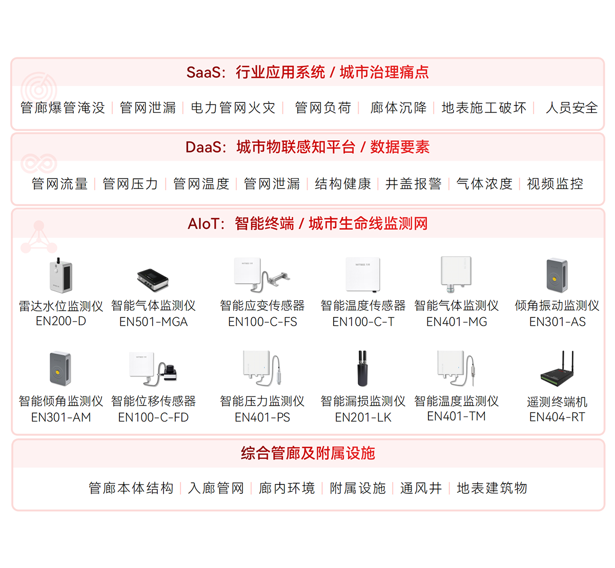 WITBEE?萬賓?是中國首批城市生命線智能監(jiān)測儀器和大數(shù)據(jù)服務(wù)提供商,提供智能監(jiān)測儀器、智能基站、云端平臺等智能物聯(lián)網(wǎng)技術(shù)與產(chǎn)品線,賦能城市排水、供水、燃氣、供熱、橋梁、建筑、隧道、綜合管廊、河湖等城市基礎(chǔ)設(shè)施生命線監(jiān)測感知網(wǎng)絡(luò)化建設(shè)和智能化管理,對接城市運行管理服務(wù)平臺,支撐城市運行“一網(wǎng)統(tǒng)管”,提升城市生命線運行效率和安全,提高城市精細化治理能力。